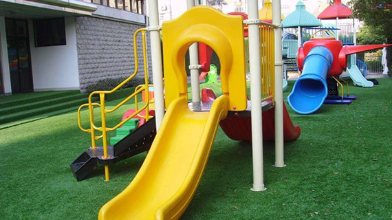 綠舒坦幼兒園人造草坪,SGS不含鉛等重金屬,不含甲醛,且幼兒園仿真草坪全部采用環保背膠。更有彩虹草和彩虹跑道,豐富寶寶的幼兒園色彩。綠舒坦幼兒園人造草坪高密度直曲草絲混織,保護寶寶免受摔倒損傷。